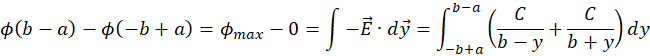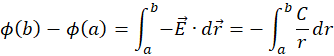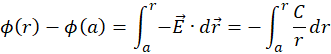 . Express the difference in electric potential between the circles through the line integral of electric field along radial line: